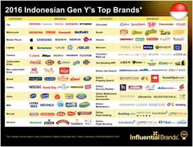 Jakarta, MediaProfesi.com � Brand Alliance, melalui Influential Brands� yaitu sebuah platform merek produk terkenal mengumumkan hasil survei terhadap merek produk ternama tahun 2016 berdasarkan pilihan Gen Y (usia 21 � 31 tahun) Indonesia.