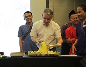 Usai menyanyikan lagu selamat ulang tahun, tiup lilin dan potong kue serta foto bersama, acara memasuki puncaknya yaitu Pemotongan Tumpeng yang diwakili oleh General Manager sebagai lambang ucapan syukur atas pencapaian yang sudah diraih selama enam tahun.