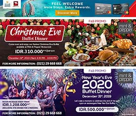 Ditemani dengan Live Music, Mint & Pepper Restaurant menjadi sangat cocok untuk merayakan kehangatan malam natal anda bersama dengan orang-orang terdekat. Ditambah lagi dengan adanya Early Bird Promo dimana jika anda melakukan reservasi untuk Christmas Eve Buffet Dinner ini sebelum tanggal 14 Desember 2019, anda akan mendapatkan Diskon sebesar 20%.